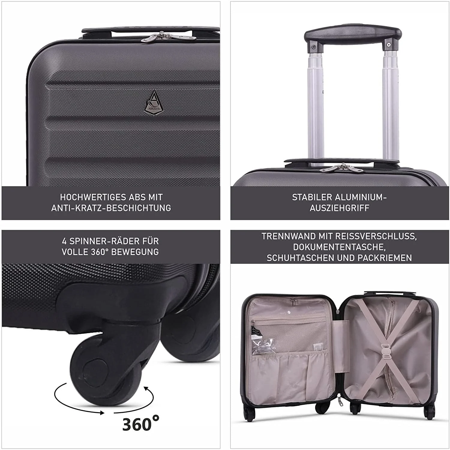 Aerolite 45x36x20cm Koffer Handgepäck Easyjet Maximale Größe ABS Cabin Baggage Hartschale Untersitz Bordkoffer Flugtasche mit 4 Rollen 5 Jahre Garantie