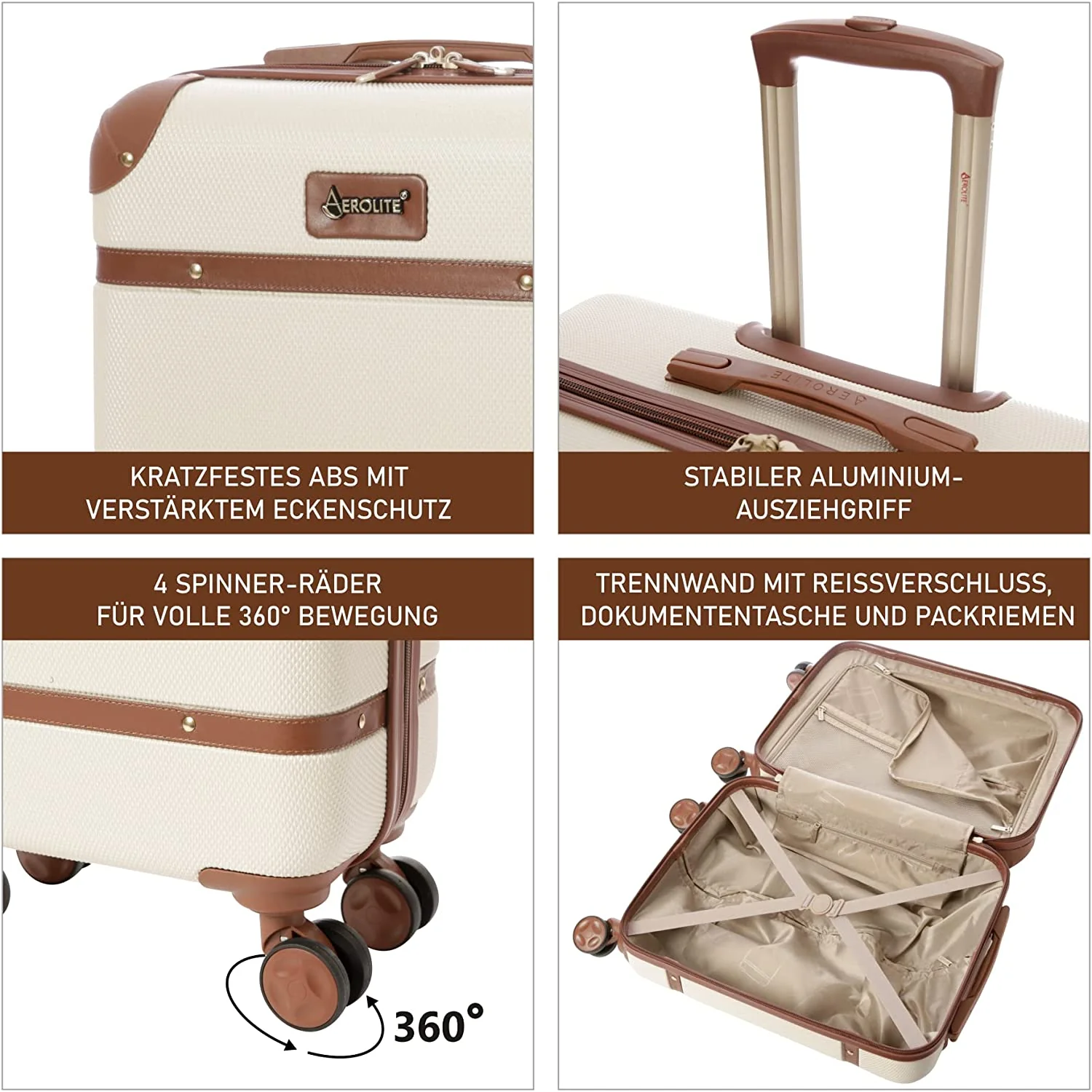 Aerolite 55x35x20cm Handgepäck Trolley Koffer Leicht Moderner Klassischer Retro Vintage Hartschalenkoffer mit 4 Doppelspinnrädern Ryanair Easyjet (Cremefarben)