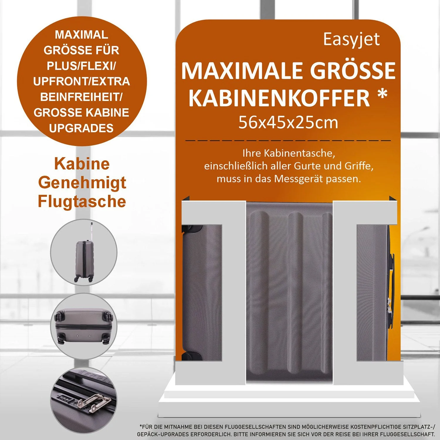 - GENAU die MAXIMAL erlaubte Größe für Easyjet (Plus und Flexi), British Airways und Jet2. Bitte beachten: Für die Mitnahme auf Easyjet ist ein Easyjet Plus- oder Flexi-Upgrade erforderlich. Abmessungen: 56x45x25 cm (alle Teile), 51x45x25 cm (Gehäuse), Gewicht: 3,20 Kg, Kapazität: 46 Liter