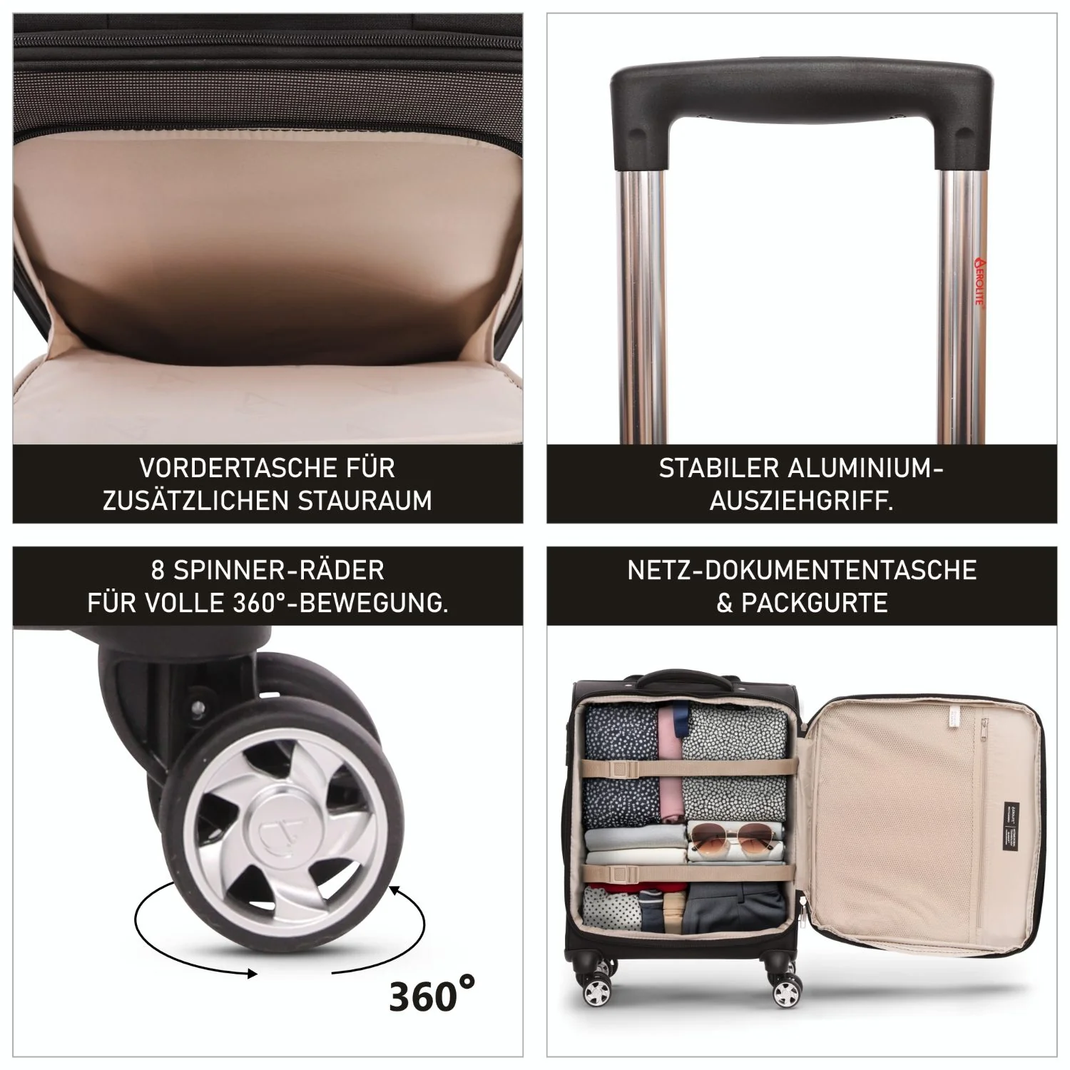 Aerolite Handgepäckkoffer 55x40x20cm – Erweiterbar auf 55x40x23cm – Lufthansa MAX Kabinengröße – Ryanair & Wizz Air Priority – Leichter Weichschalen Kabinentrolley mit TSA-Schloss