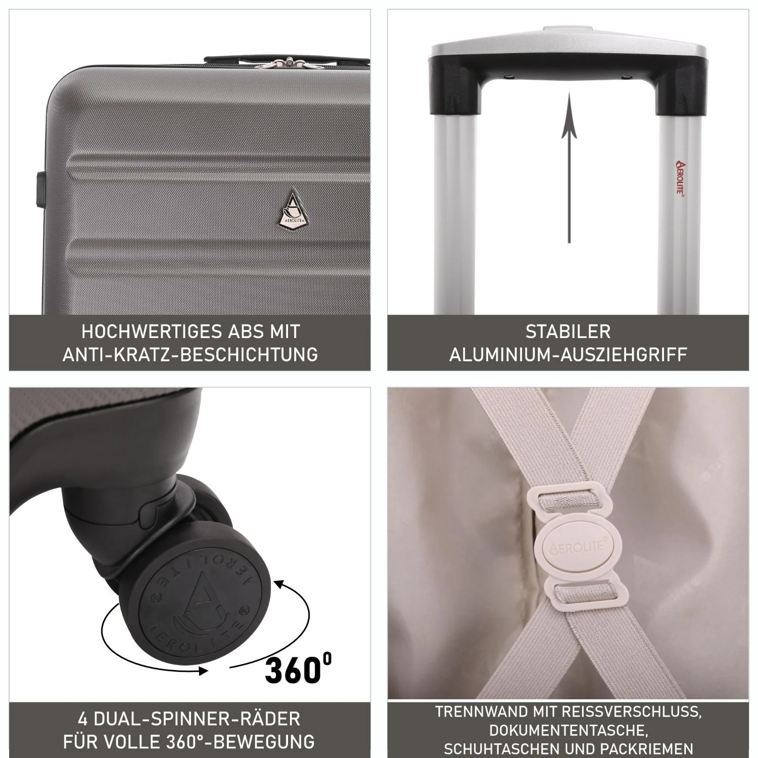 - PACKEN SIE MEHR: Wir bei Aerolite wissen, dass bei Gepäckstücken jedes Gramm zählt! Deshalb haben wir den ABS325 so leicht wie möglich konstruiert. Gleichzeitig bietet er starken Aufprallschutz und den nötigen Platz für Ihre wichtigen Habseligkeiten. Abmessungen: 79x58x31cm (eingezogener Griff, einschließlich Räder und Griff), 73x56x31cm (ohne Räder und Griff), Höhe (ausgezogener Griff) 1m, Gewicht: 4,85kg. Fassungsvermögen: 127L